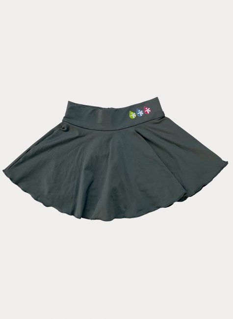 DESCRIÇÃO: Peça com malha de alta qualidade, toque geladinho e flexível. A saia rodada possui cós com elástico, bermuda anexa e aplicação do nome da escola.
